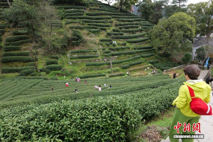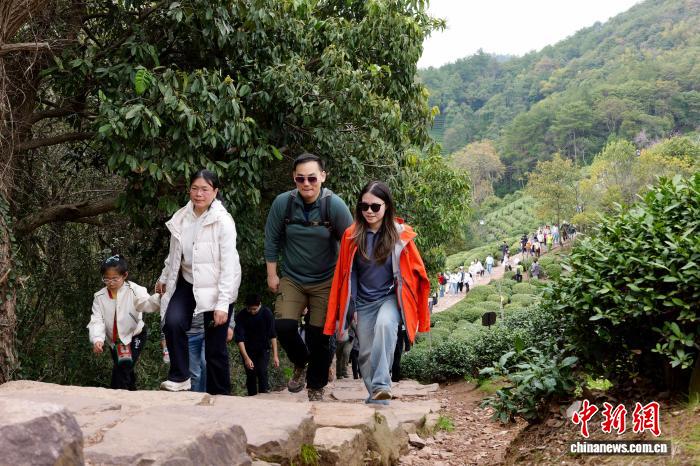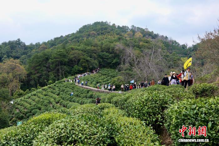 3月28日,市平易近信步茶山。指日,浙江杭州西湖景色实胜区秋光恰好,吸收市平易近旅客踩青赏秋。中新社记者 钱朝菲 摄